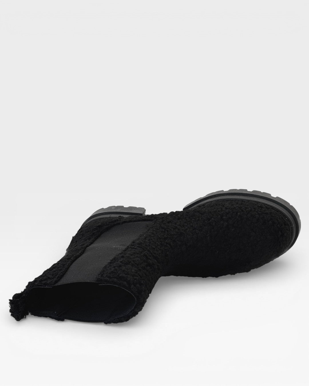 Chelsea Boots Parigi Bouclé in tessuto bouclé nero con doppio elastico laterale e suola carrarmato. Un modello caldo e avvolgente, perfetto per la stagione fredda, con lo stile contemporaneo e pulito tipico del Parigi.