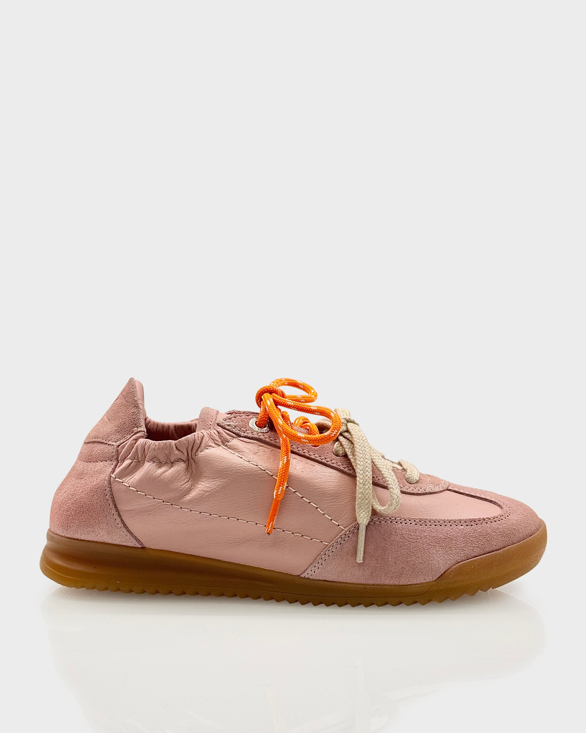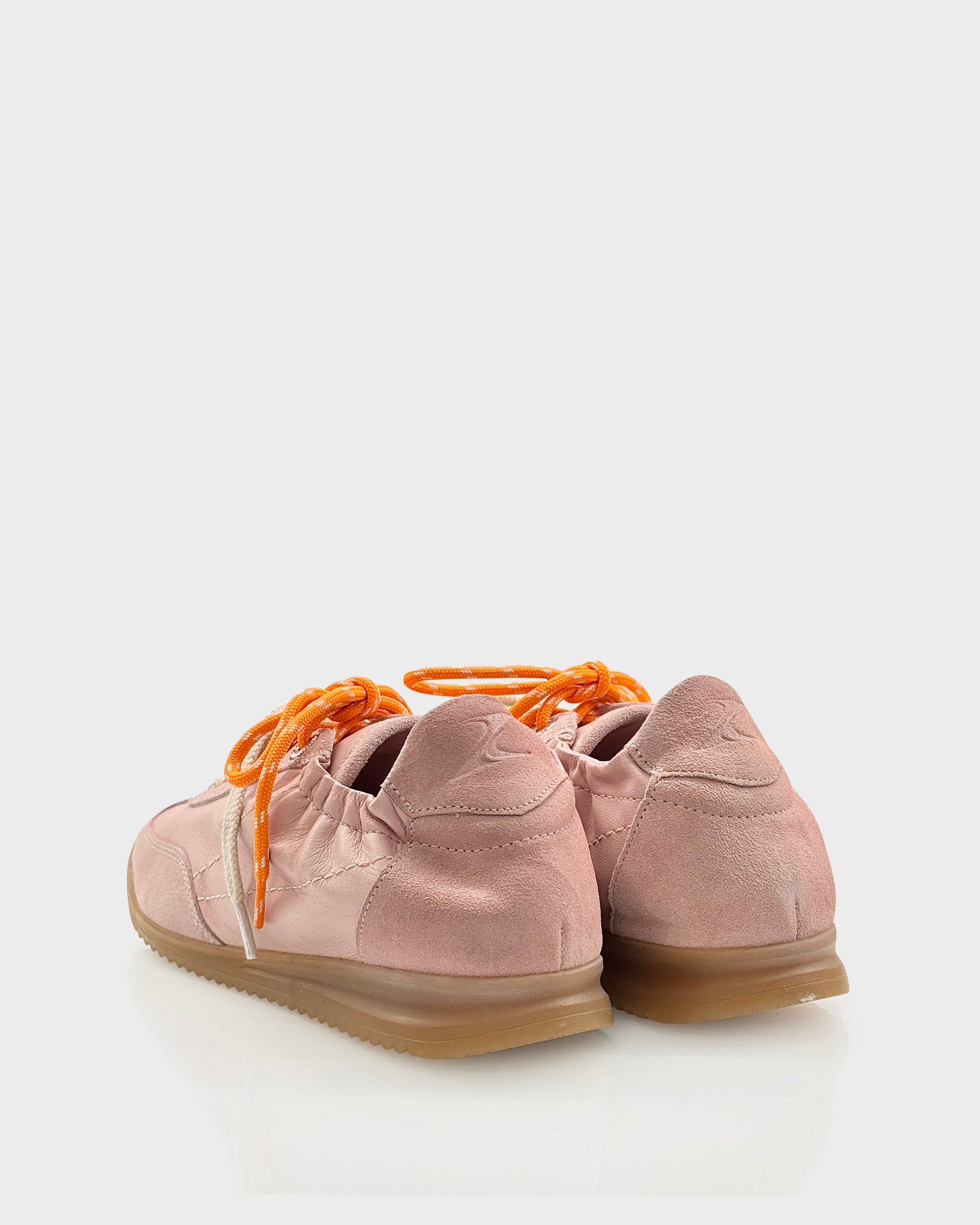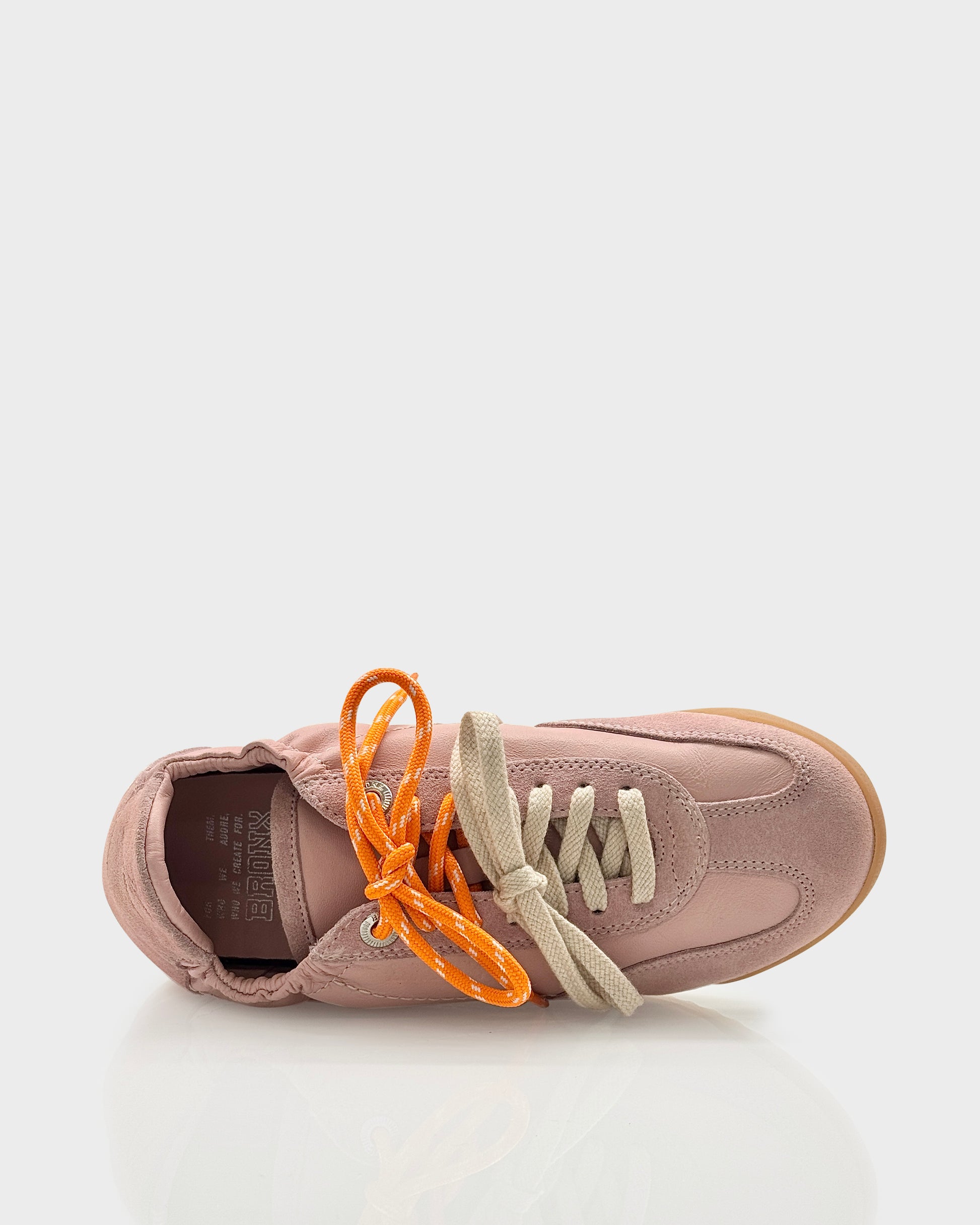 Sneakers donna in pelle morbida color Dusty Rose con inserti in suede e lacci a contrasto. Una retro running contemporanea, confortevole e versatile, pensata per l’uso quotidiano con un tocco di personalità.