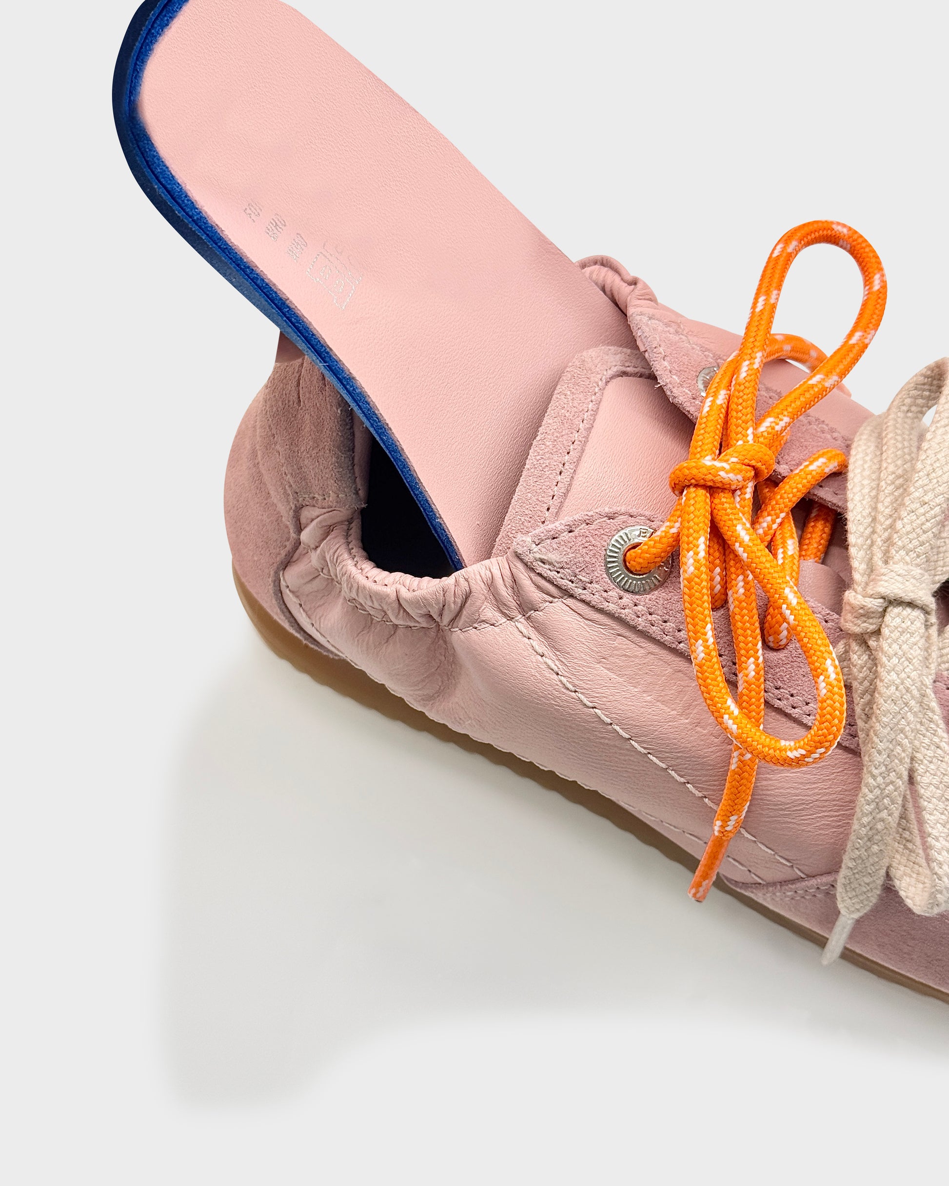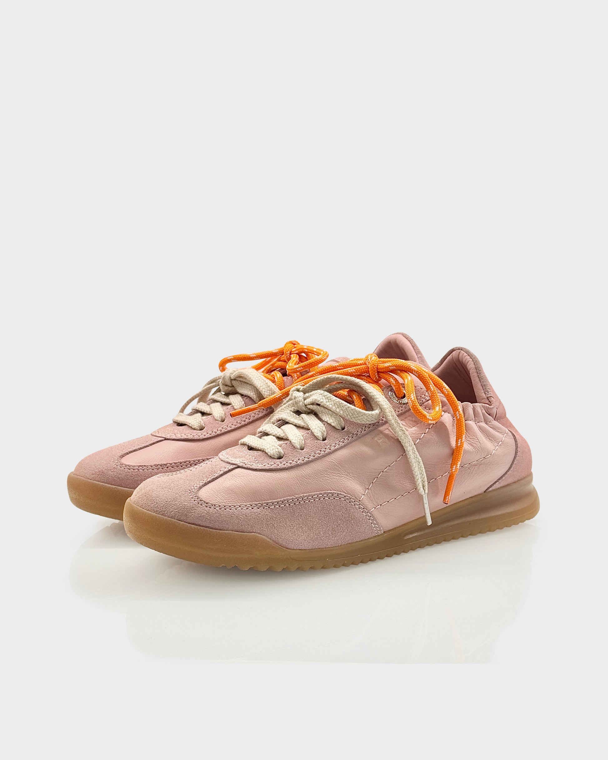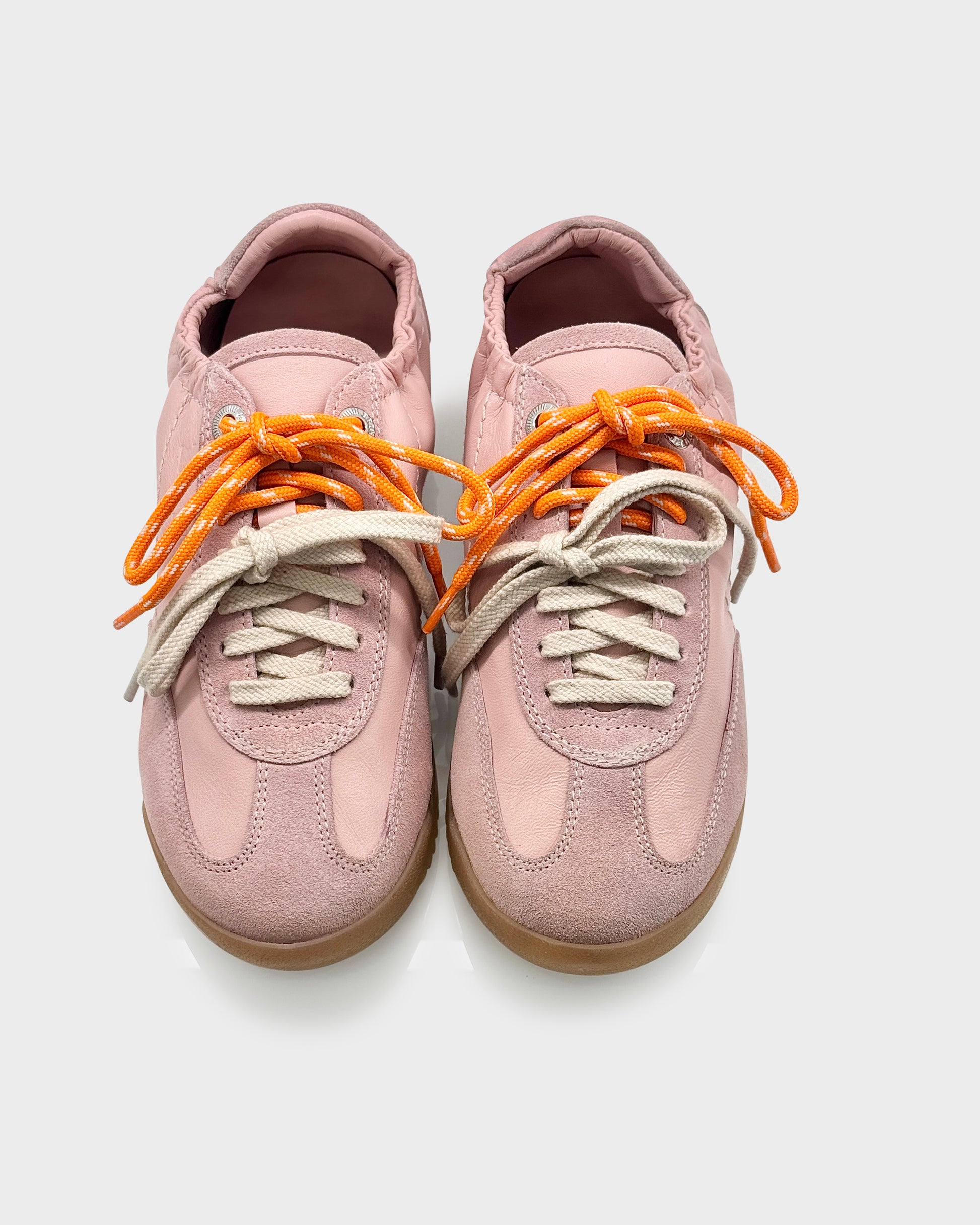 Sneakers donna in pelle morbida color Dusty Rose con inserti in suede e lacci a contrasto. Una retro running contemporanea, confortevole e versatile, pensata per l’uso quotidiano con un tocco di personalità.