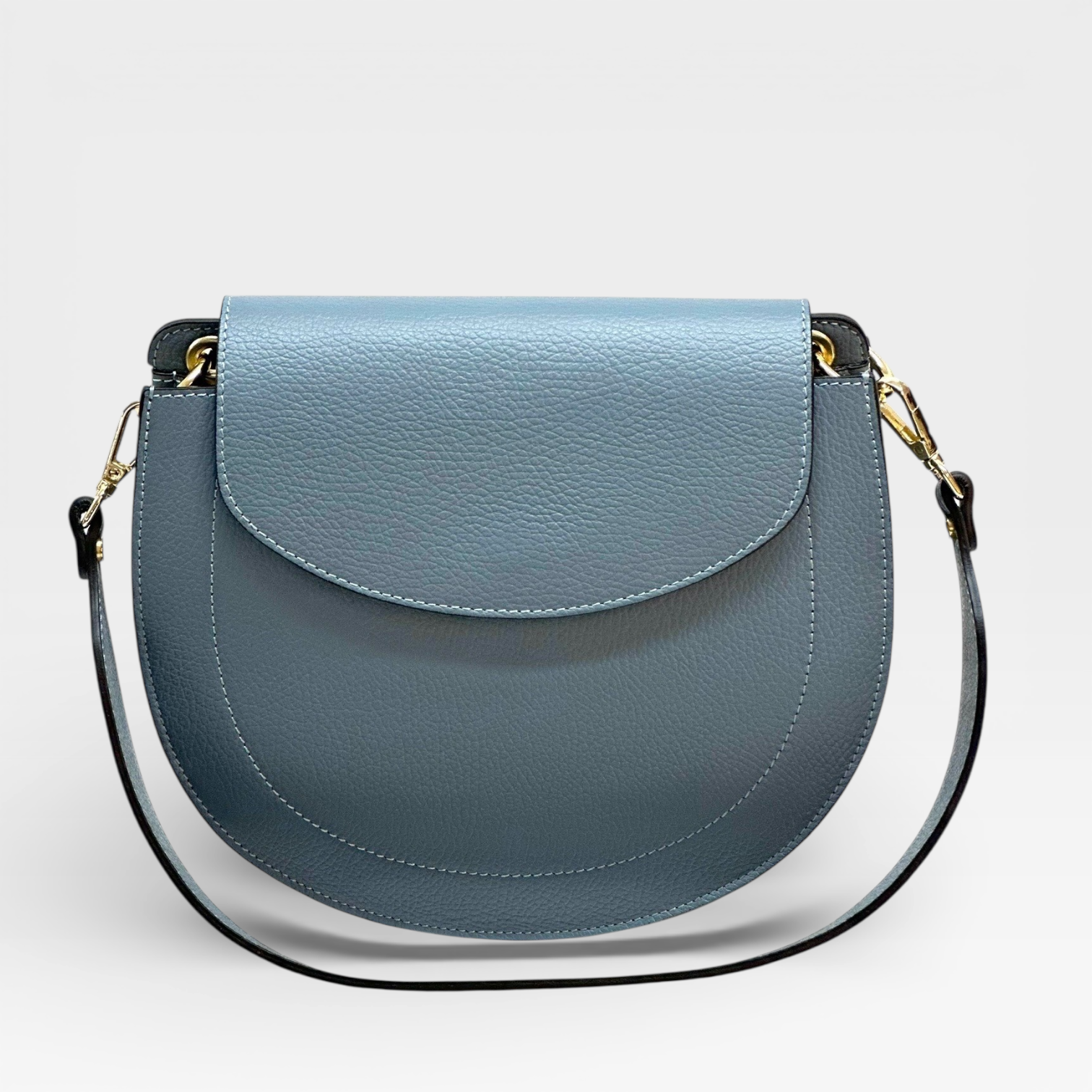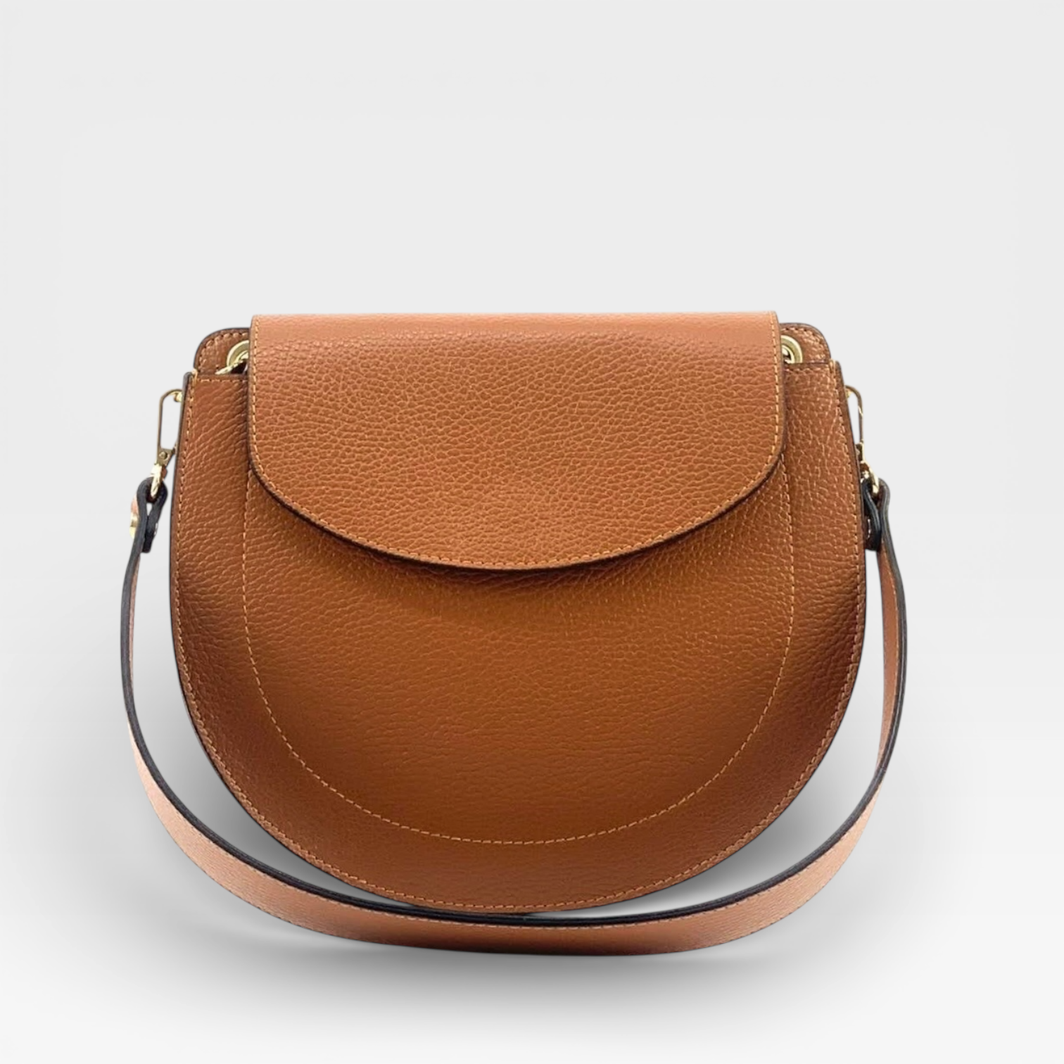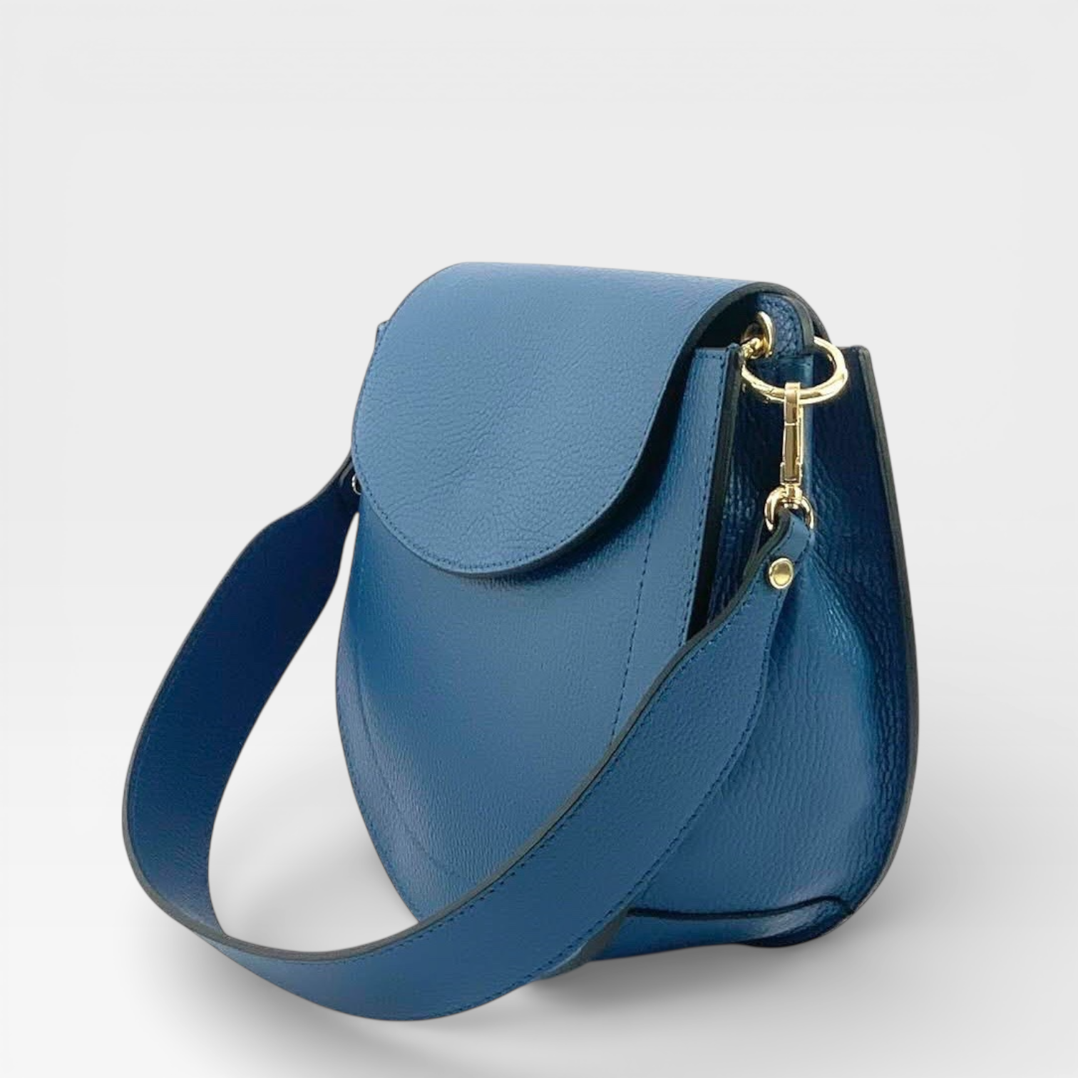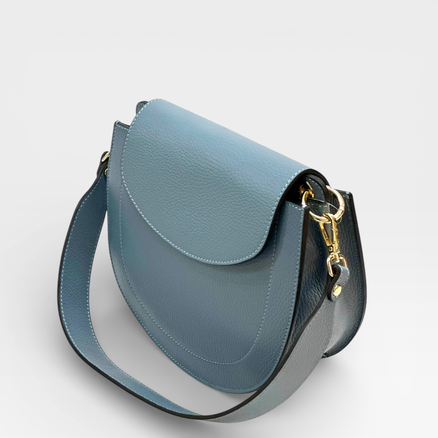Borsa saddle in pelle con tracolla intercambiabile, disponibile in diversi colori. Realizzata artigianalmente in Toscana, è compatta ma capiente, ideale per l’uso quotidiano e perfetta per accompagnarti con stile in ogni momento della giornata.