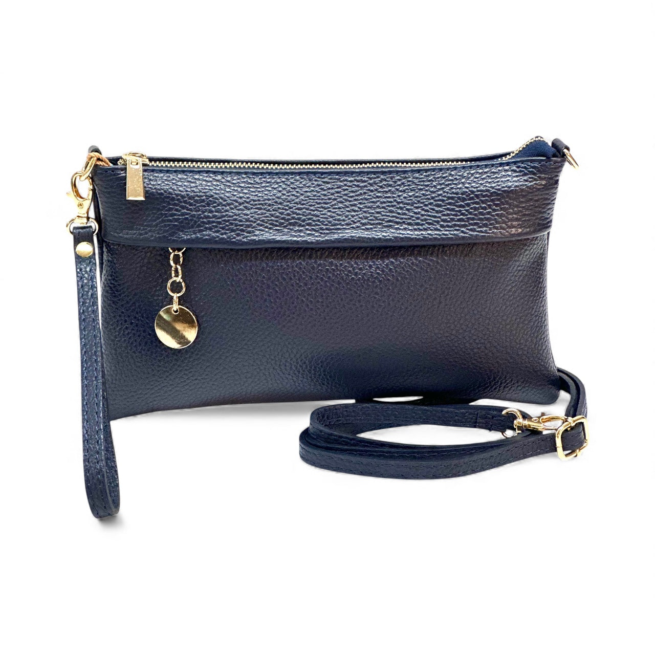 Velina ist eine kompakte und elegante Clutch aus echtem Leder mit einem innenliegenden Schulterriemen, der das Tragen in der Hand oder über der Schulter ermöglicht. Ein unverzichtbares, elegantes und vielseitiges Accessoire für jeden Anlass.