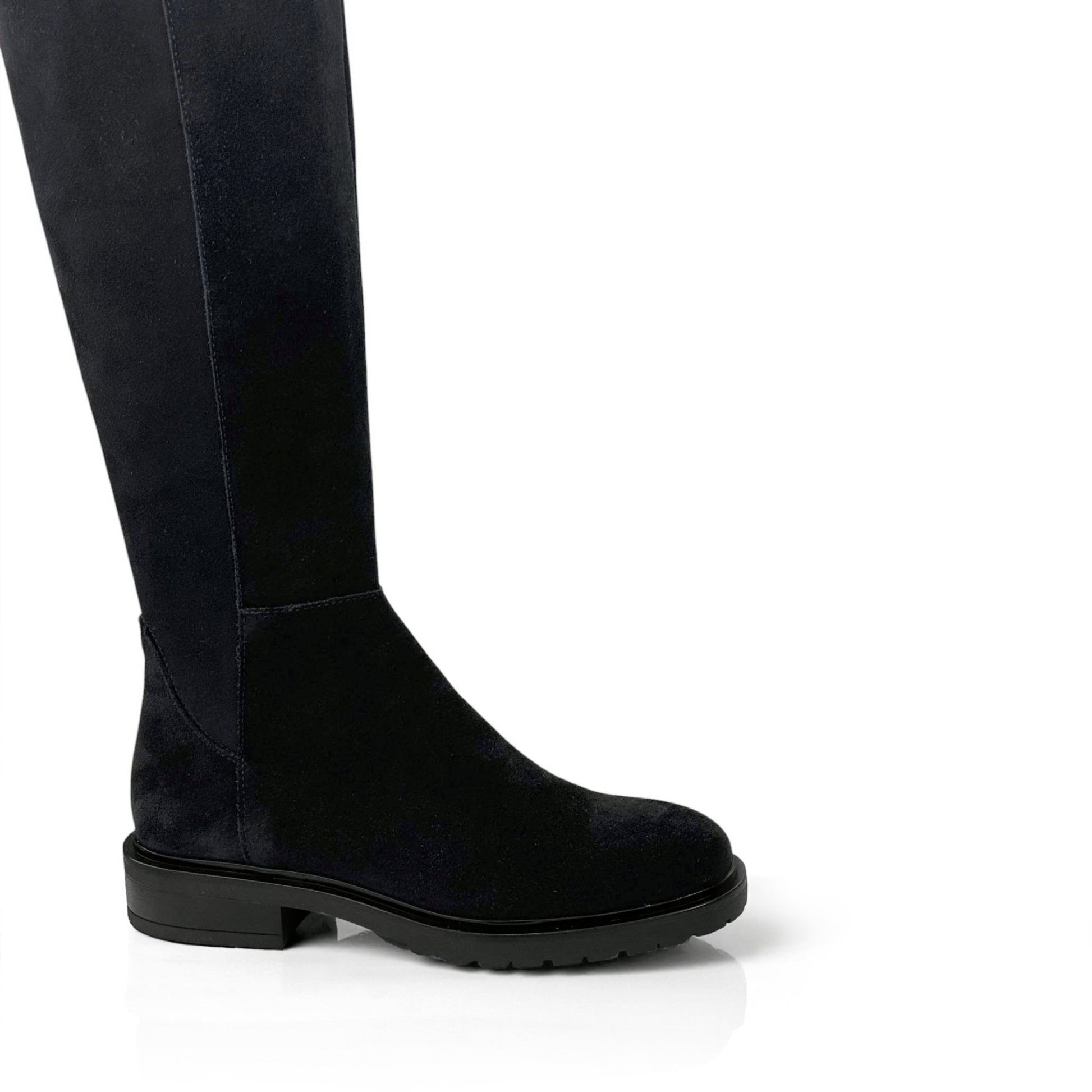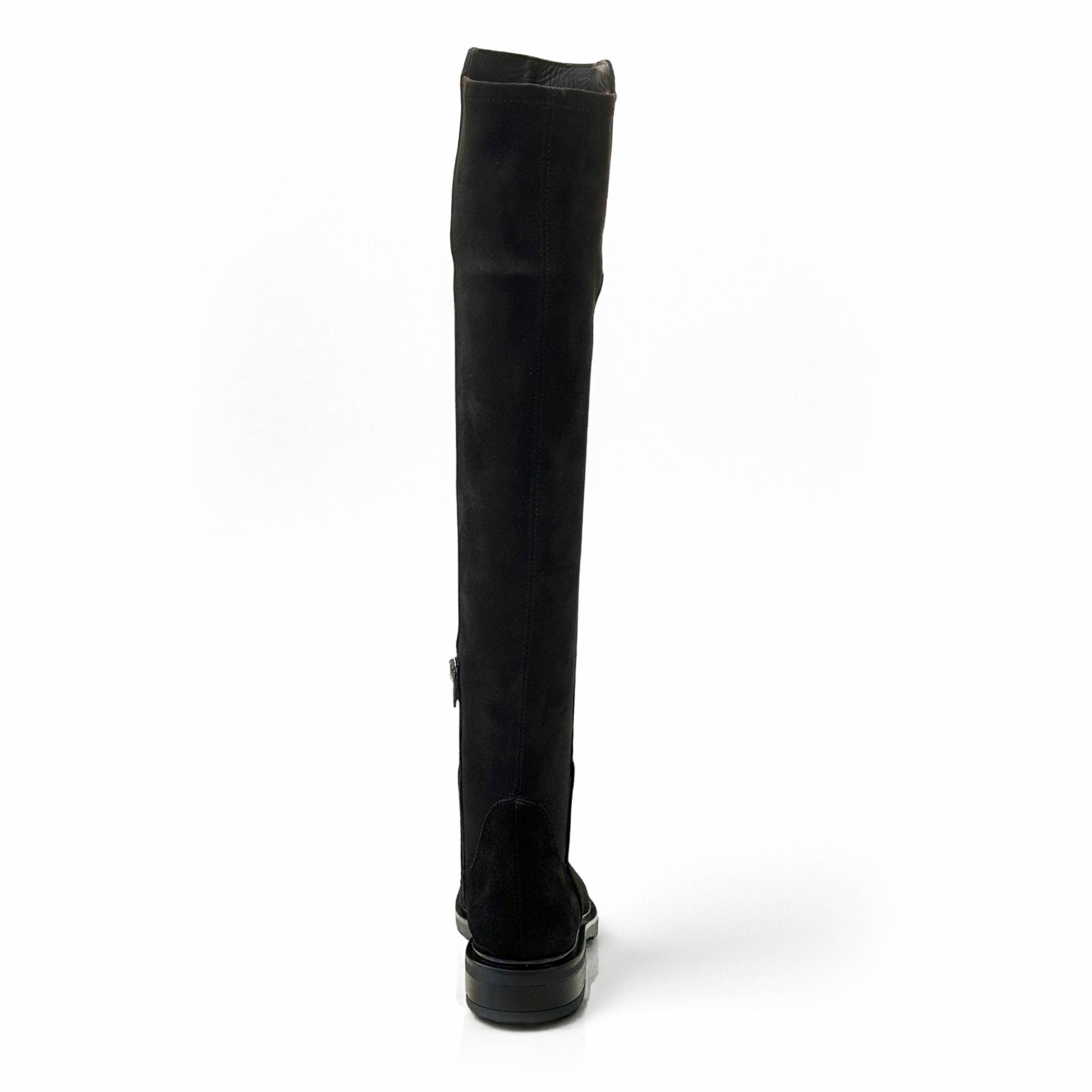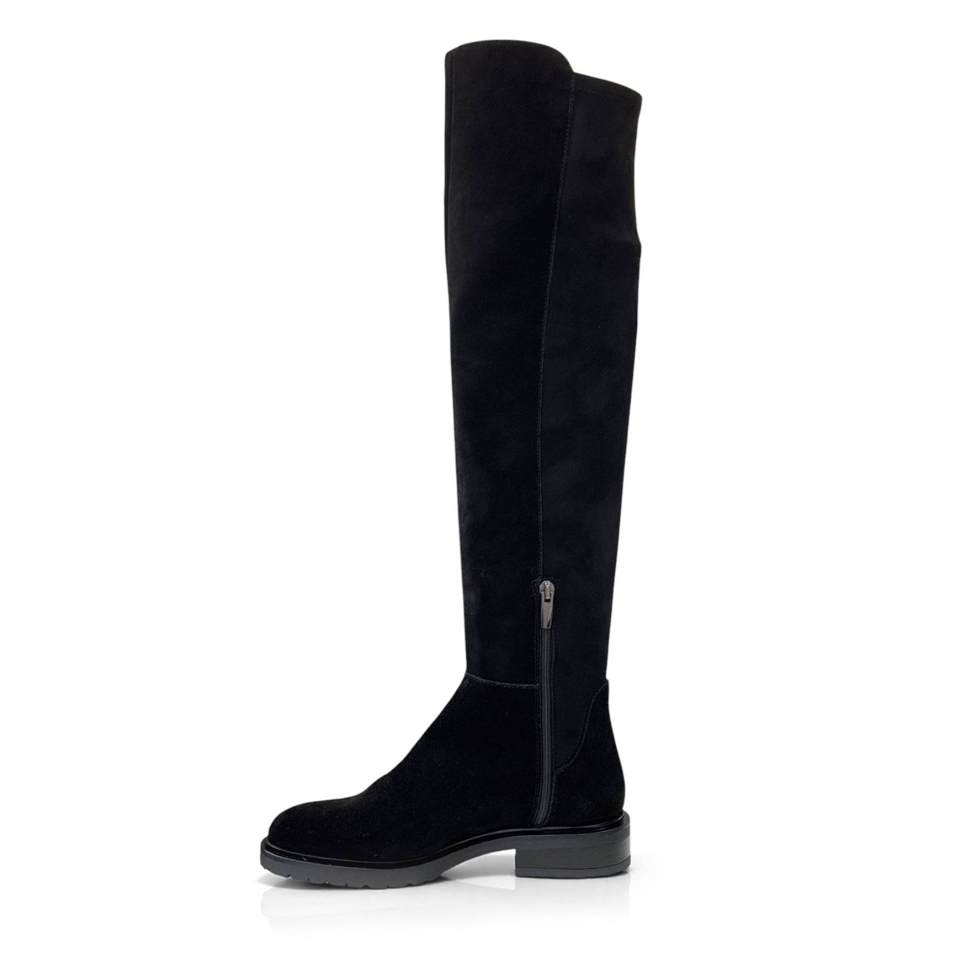 Cuissardes Elise in velour scamosciato idrorepellente, dal design elegante e lineare. La parte posteriore del gambale è elasticizzata per adattarsi anche ai polpacci più robusti, garantendo comfort e vestibilità impeccabile.