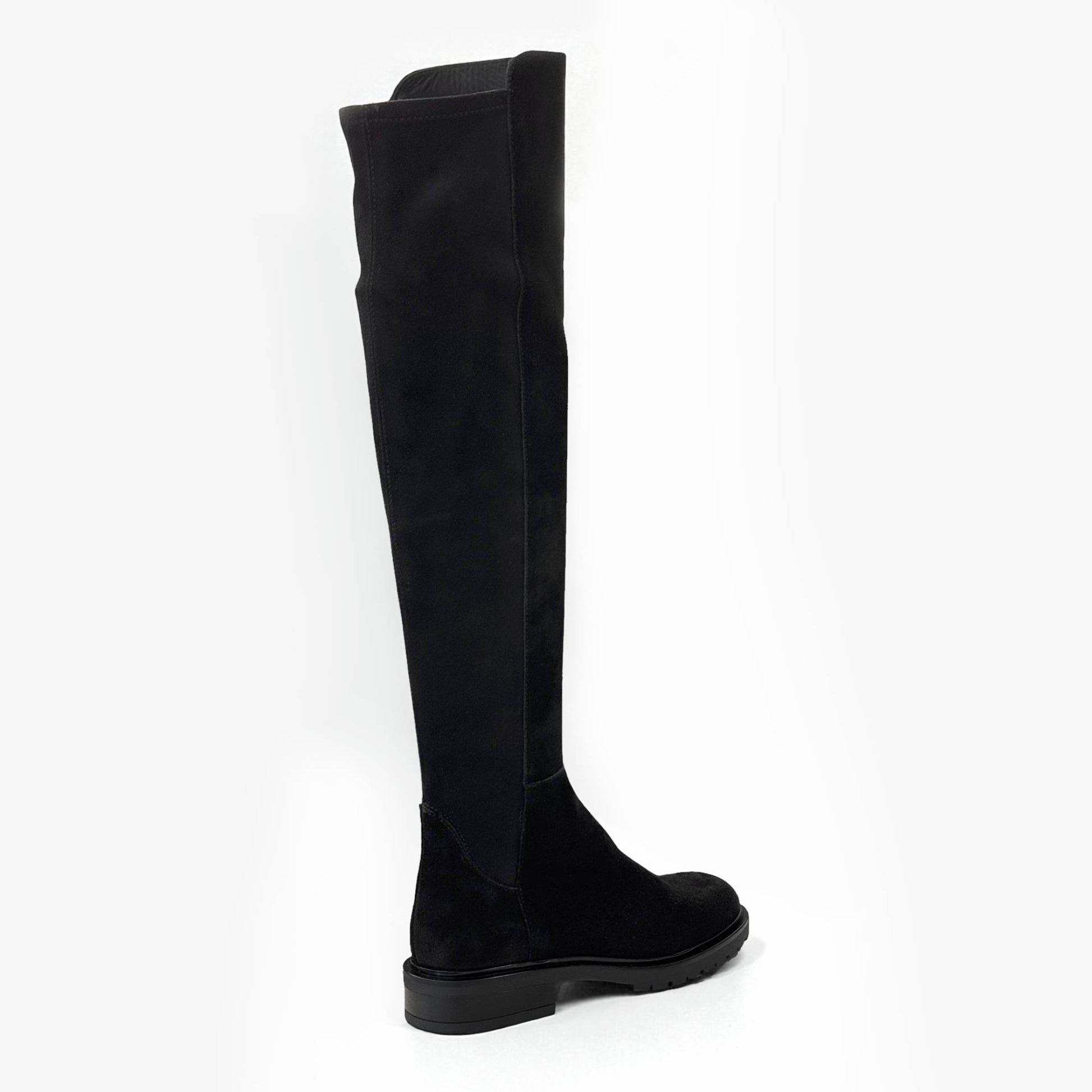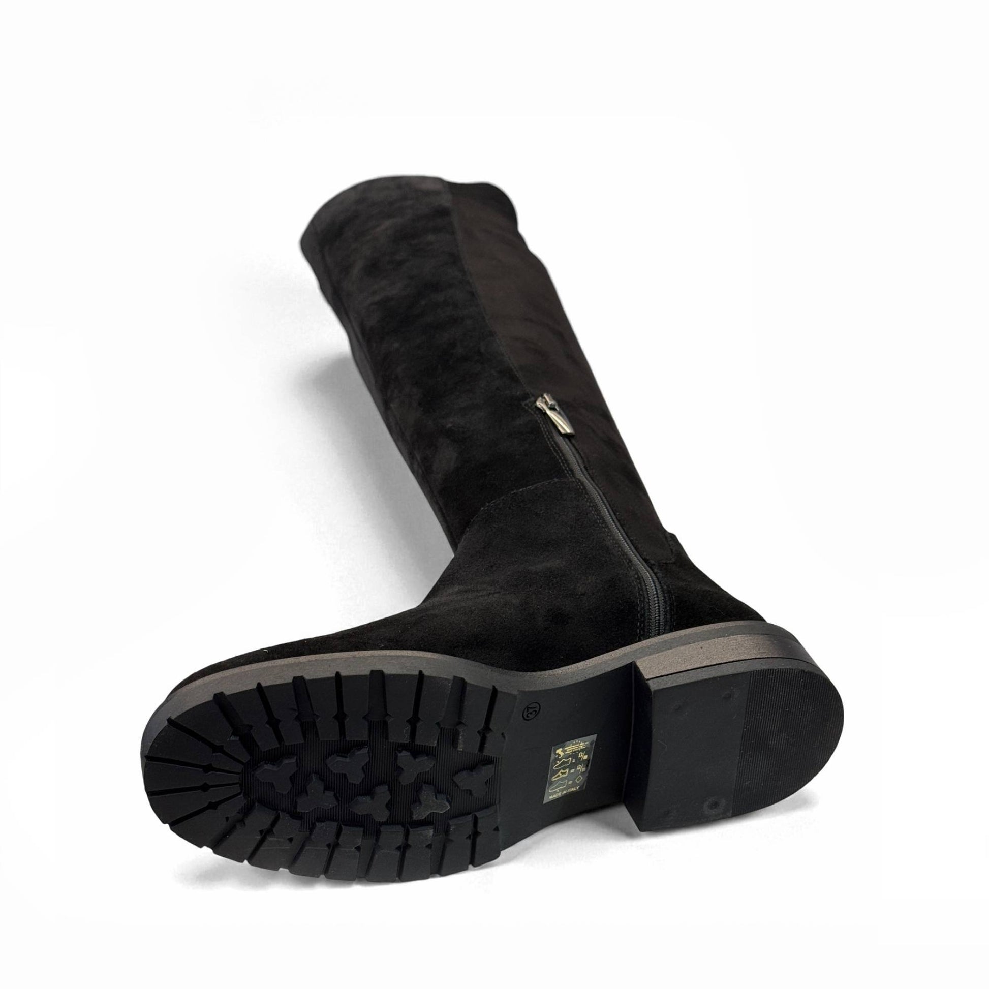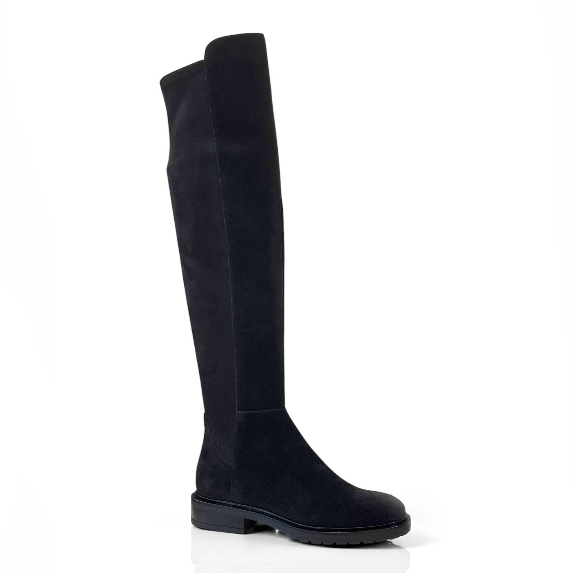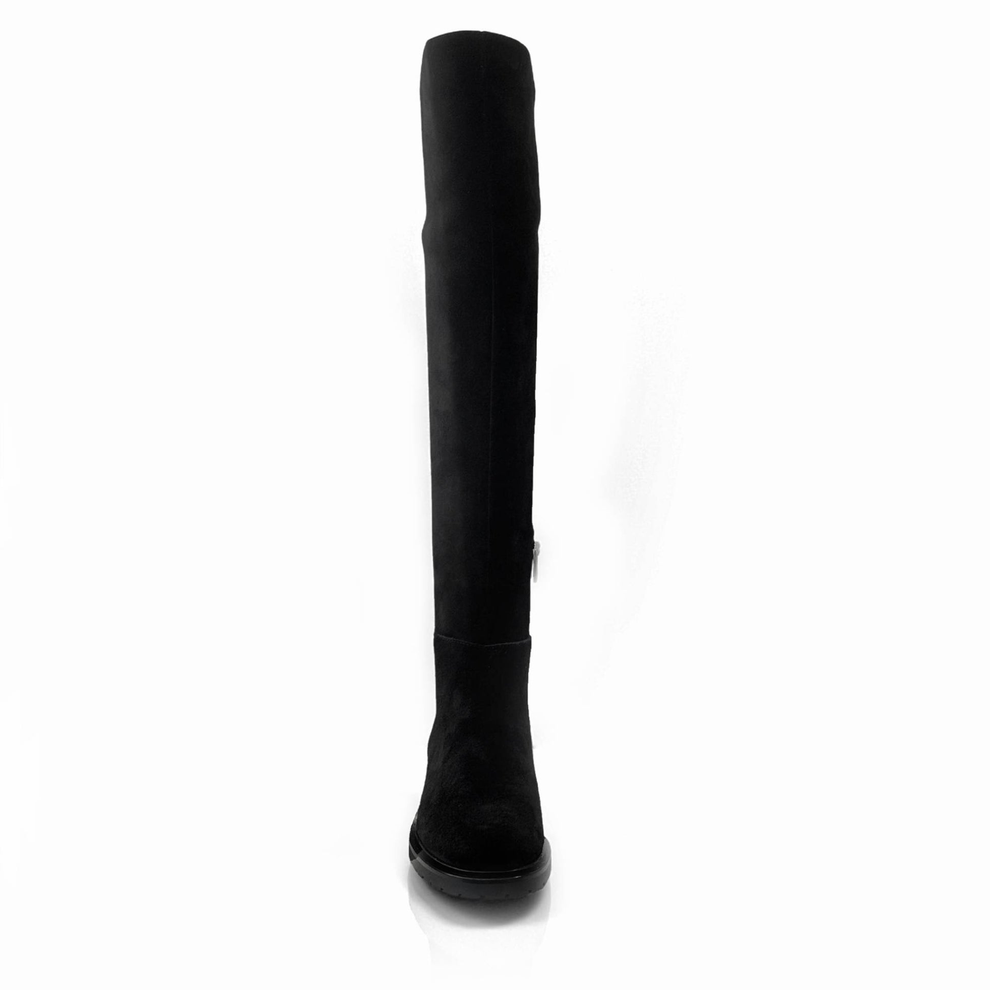 Cuissardes Elise in velour scamosciato idrorepellente, dal design elegante e lineare. La parte posteriore del gambale è elasticizzata per adattarsi anche ai polpacci più robusti, garantendo comfort e vestibilità impeccabile.