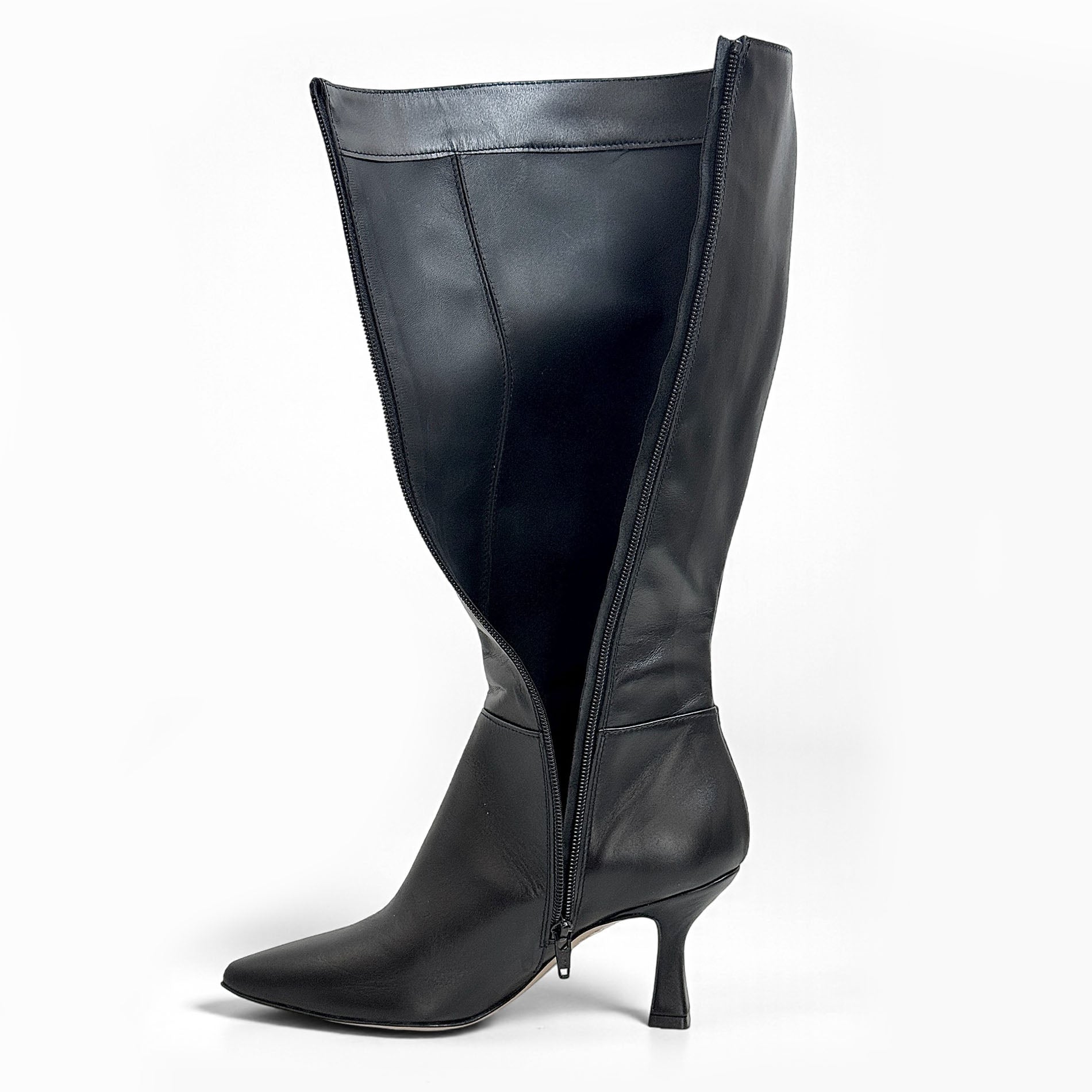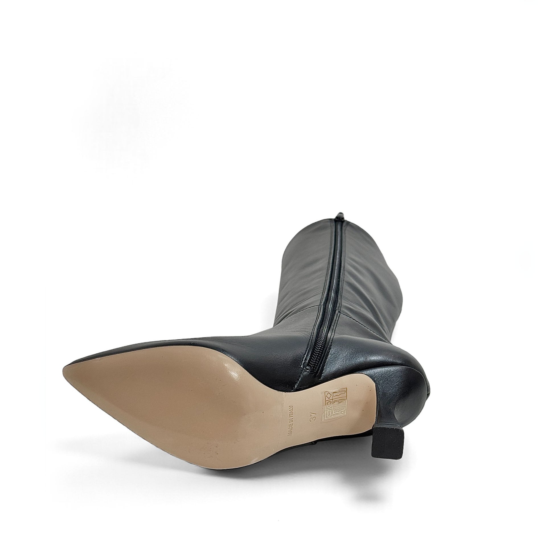 Rheanne boot in soft black leather. Handcrafted from soft leather with a leather lining. The padded insole ensures long-lasting comfort, while the 7 and 9 cm heels create an elegant and slender silhouette. Side zip closure.