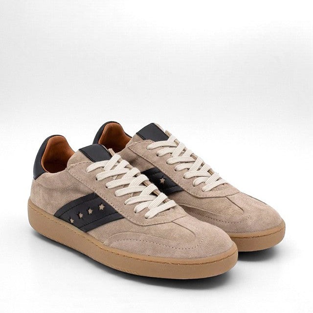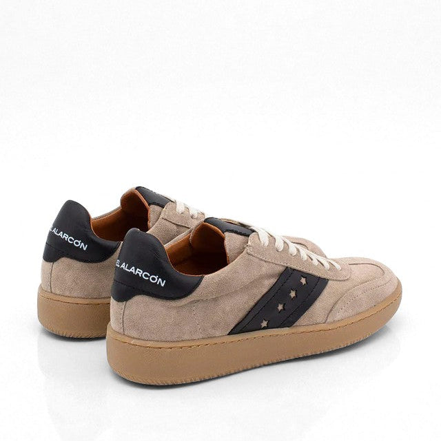 Sneakers artigianale firmata Angel Alarcón, realizzata in camoscio idrorepellente e foderata in vera pelle. Il sottopiede morbido ed estraibile garantisce un comfort prolungato per tutto il giorno, mentre la suola in gomma leggera assicura stabilità e flessibilità. Uno stile sportivo ma raffinato, perfetto per ogni look casual-chic.