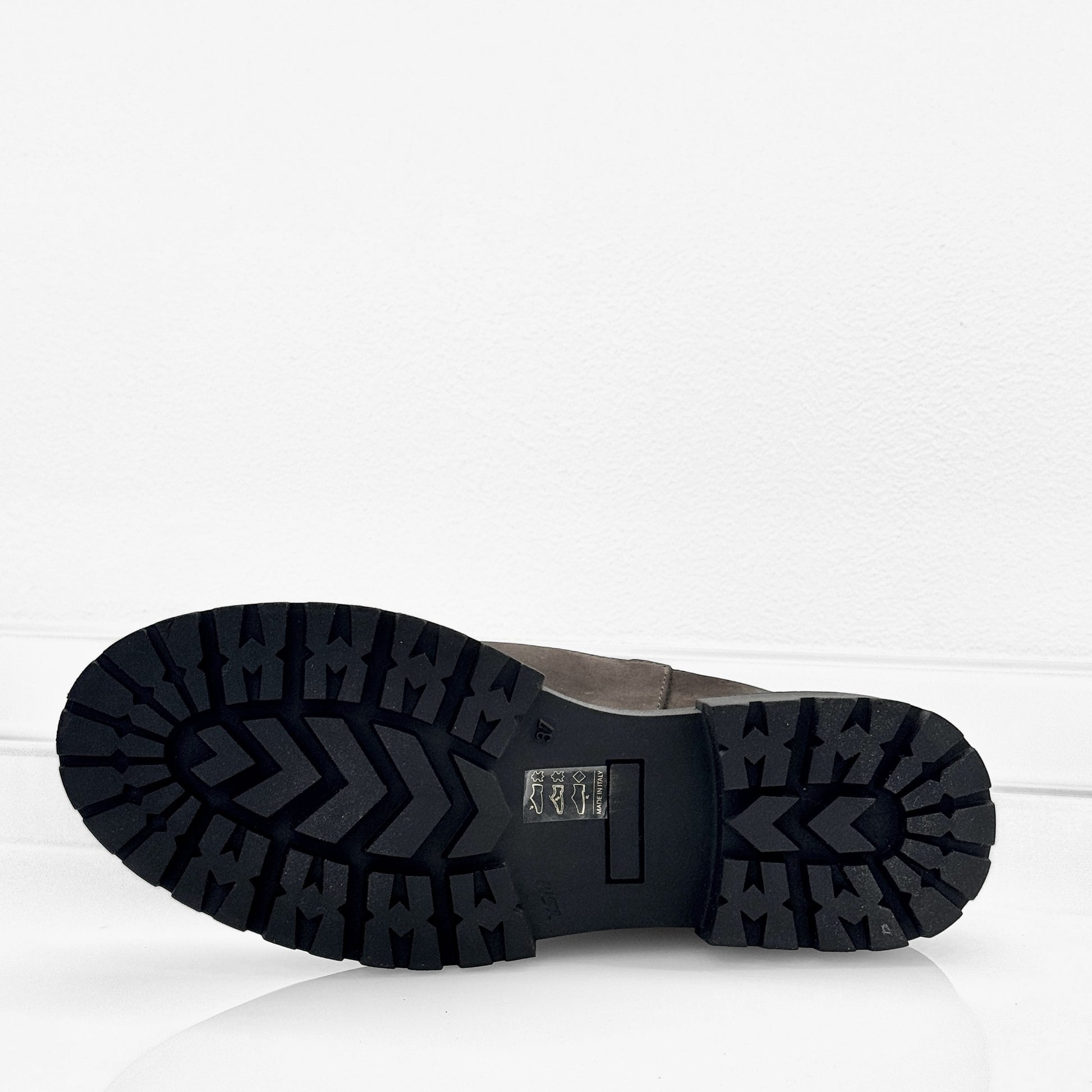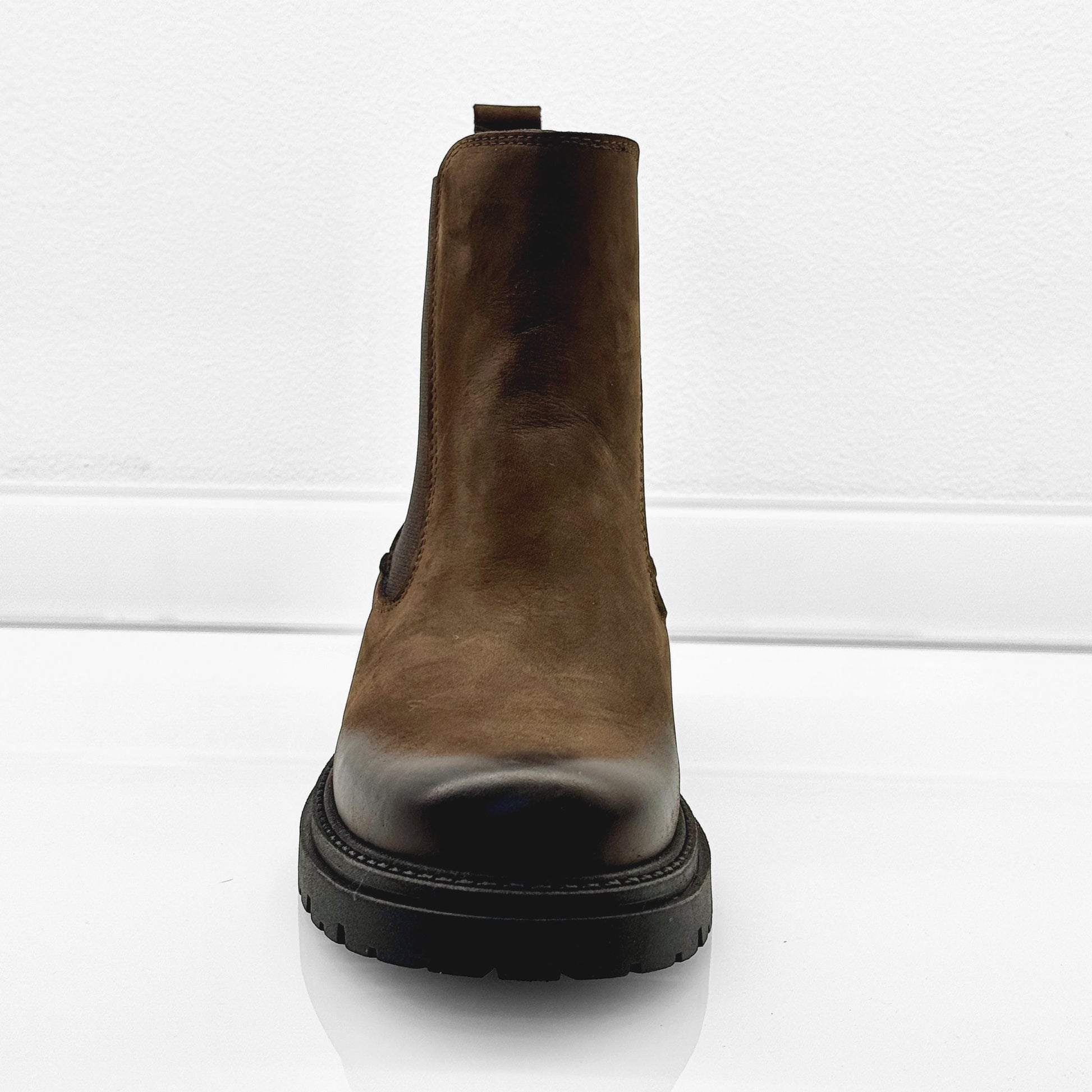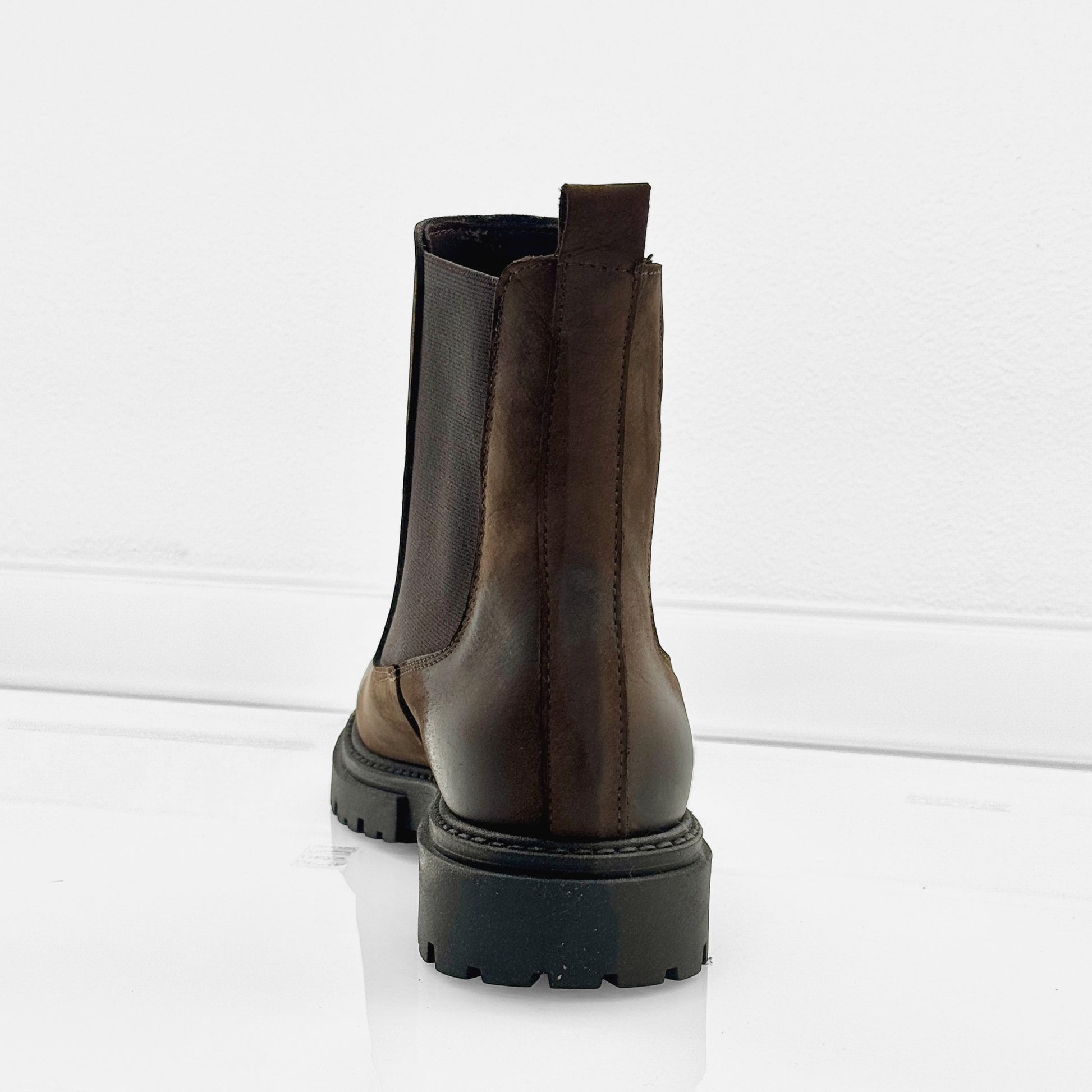 Scarponcino Beatles Nevada in pelle nabuk ingrassato color moro, ideale per l’inverno e resistente alle intemperie. Elastici laterali, suola carrarmato in vera gomma per stabilità e grip. Altezza 3,5 cm.
