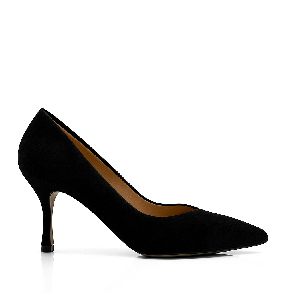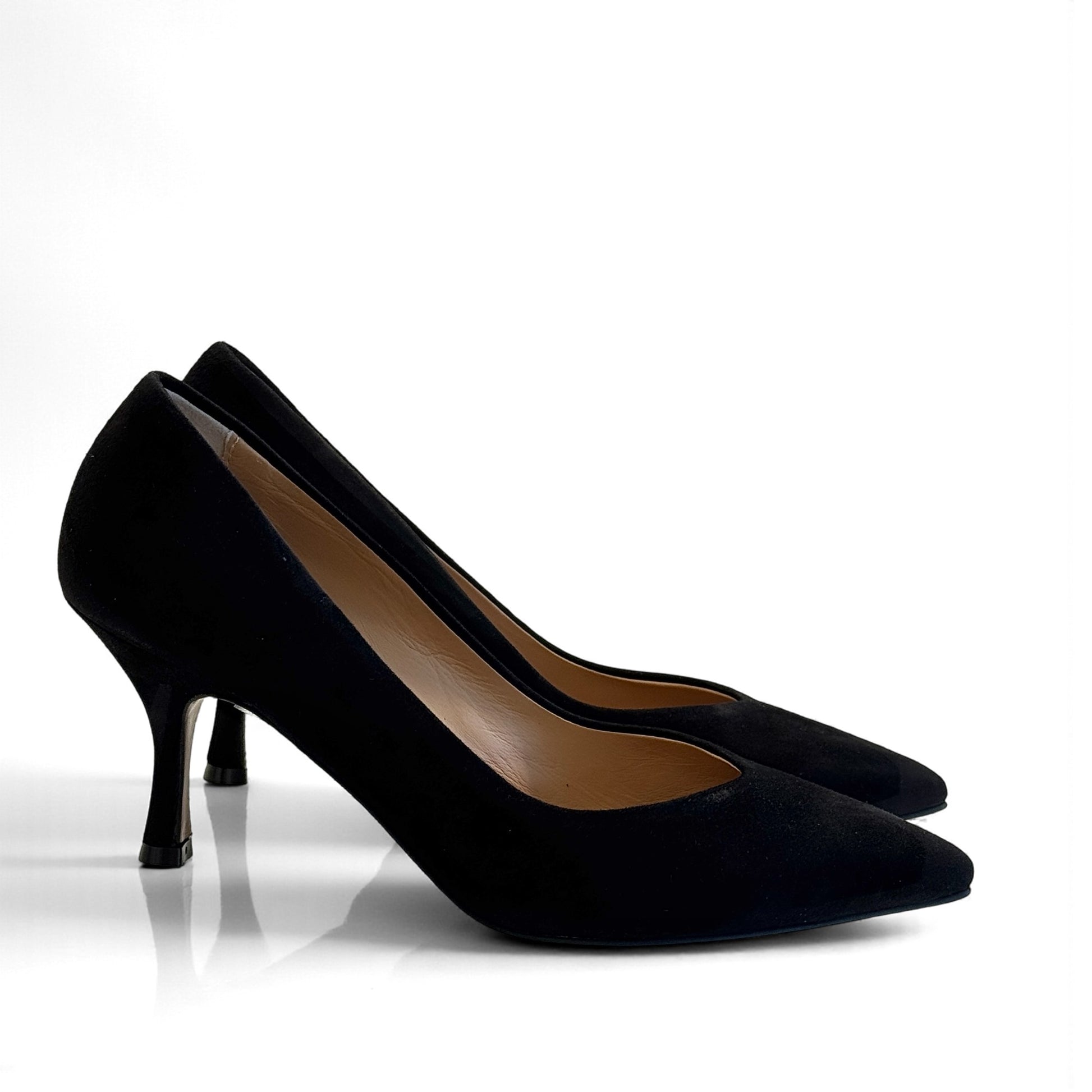 Décolleté in camoscio nero idrorepellente con scollo a V e tacco 7 cm.
