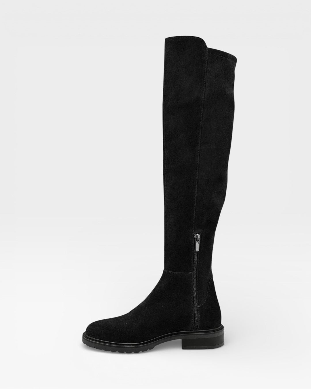 Cuissardes Elise in velour scamosciato idrorepellente, dal design elegante e lineare. La parte posteriore del gambale è elasticizzata per adattarsi anche ai polpacci più robusti, garantendo comfort e vestibilità impeccabile.